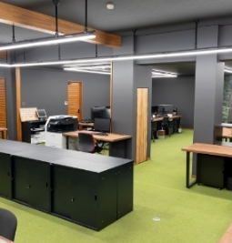 オシャレな空間でストレスフリーに仕事がはかどります。事務所内はずっと音楽が流れていてテンションUP!